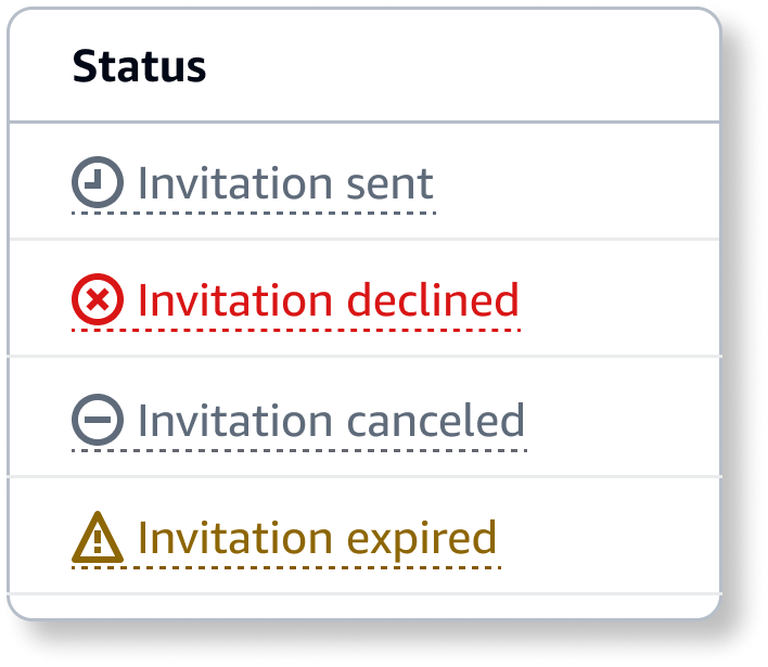 Figure 1: Invitation statues as displayed in the AWS Billing and Cost Management console.